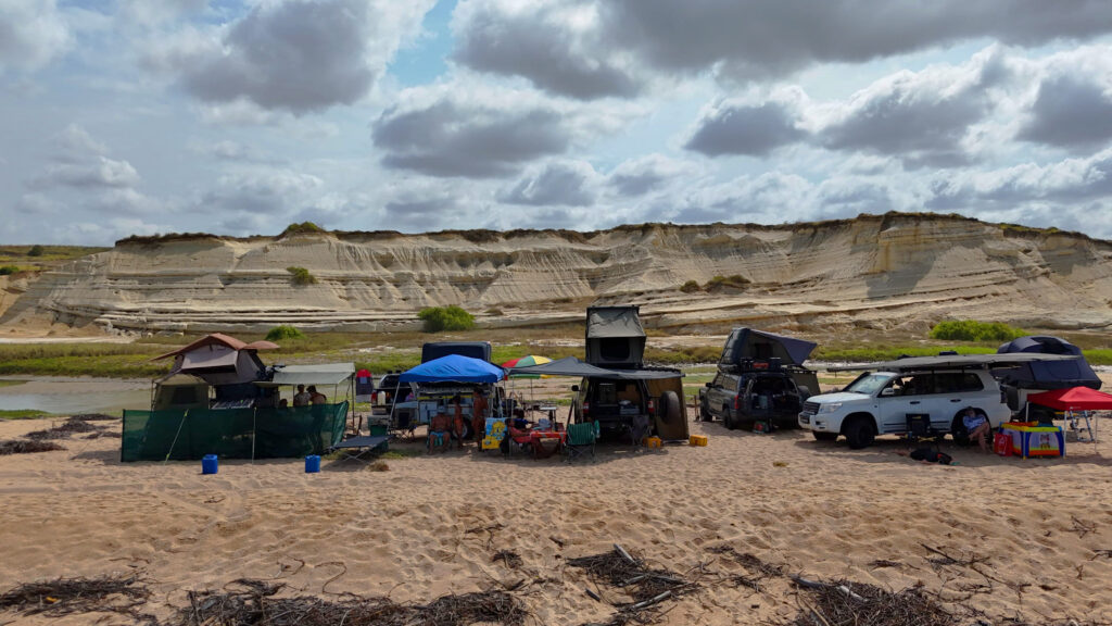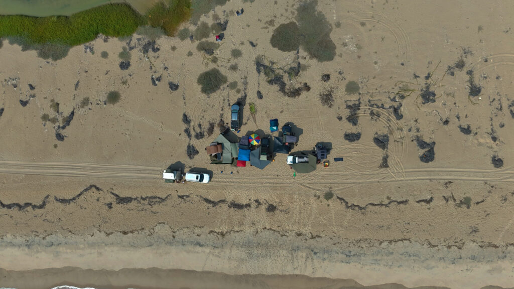Um grupo de seis veículos, equipados com trailers overland (quatro viaturas) e tendas de tejadilho (duas), partiu em direção à praia através de acessos sinuosos e exigentes que ligam a estrada nacional N100 ao destino final. Estes caminhos, repletos de obstáculos naturais, são exclusivos para quem domina a arte do off-road. Cada curva exigiu atenção redobrada, mas também ofereceu vistas deslumbrantes e aquele tipo de adrenalina que só encontramos quando estamos longe do asfalto.